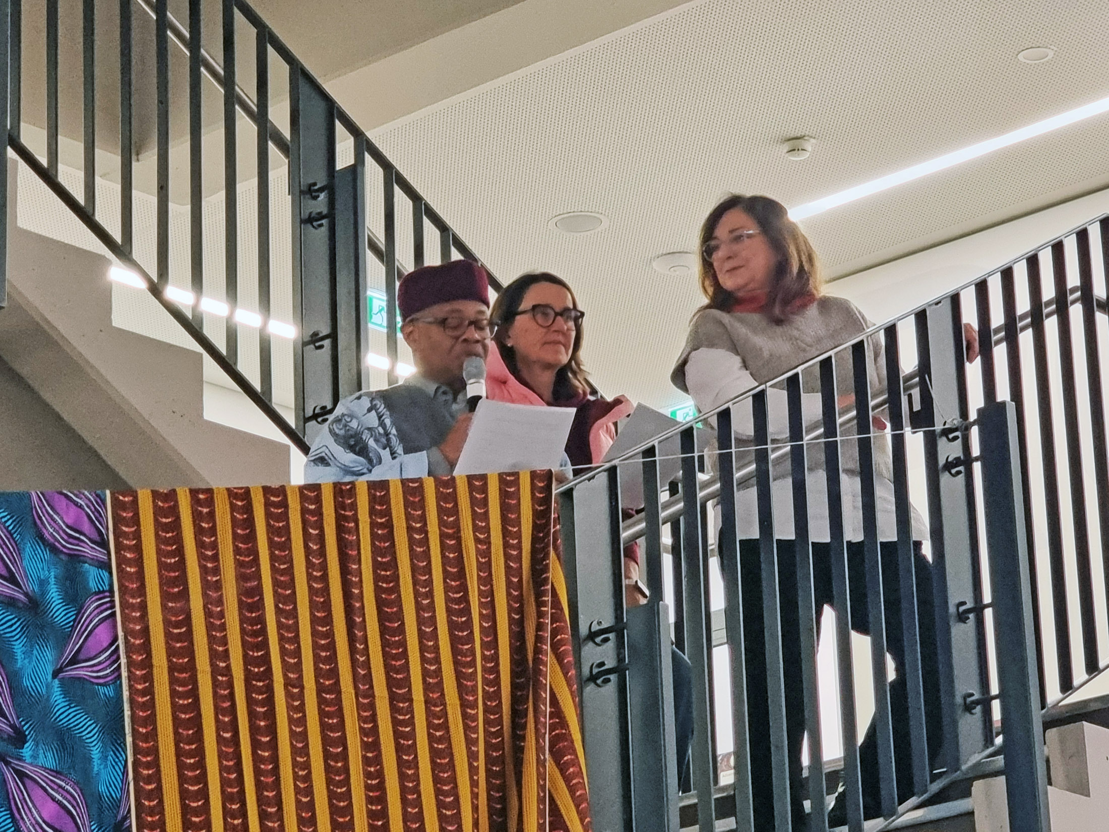 Zu der Veranstaltung angereist war auch der ehemaligen Botschafter der Bundesrepublik Deutschland in Niger, Dr. Oliver Schnakenberg; er richtete ein kurzes Grußwort an das Publikum, in dem er auch von seinem Besuch in der Schule in Kara Kara im Frühjahr dieses Jahres berichtete. Dabei habe er nur fröhliche und begeisterte Schüler/innen angetroffen.